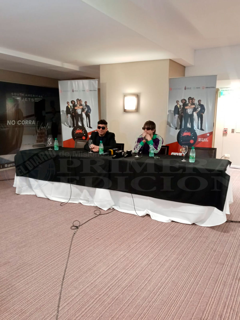 Minutos antes de las 19, previo a su presentación en el escenario del Black Friday, dos de los integrantes de Turf brindaron una conferencia de prensa en el Hotel Urbano de Posadas (Bolívar y Junín), donde se hospedan.