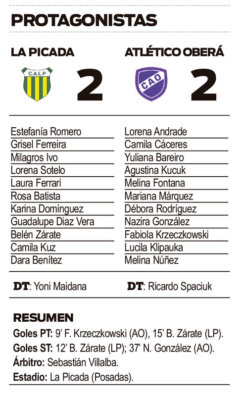 Vale recordar que La Picada se clasificó como el representante de la Liga Posadeña después de vencer a Guaraní en una polémica definición que se jugó dos veces: la primera con victoria para La Picada por 3-2 pero La Franja protestó por la mala inclusión de una jugadora y en el segundo duelo, las de Villa Cabello se impusieron nuevamente, por 3-0.
