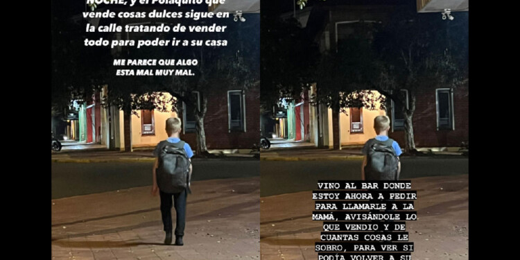 “Son las 00.10 de la noche, y el Polaquito que vende sus cosas dulces sigue en la calle tratando de vender todo lo que puede para volver a su casa (…) vino al bar donde estoy ahora a pedir para llamarla a la mamá enviándole cuantas cosas vendió y las que le sobró… para poder ver si podía volver a su casa. Así toda la semana”, contó el deportista en redes sociales.