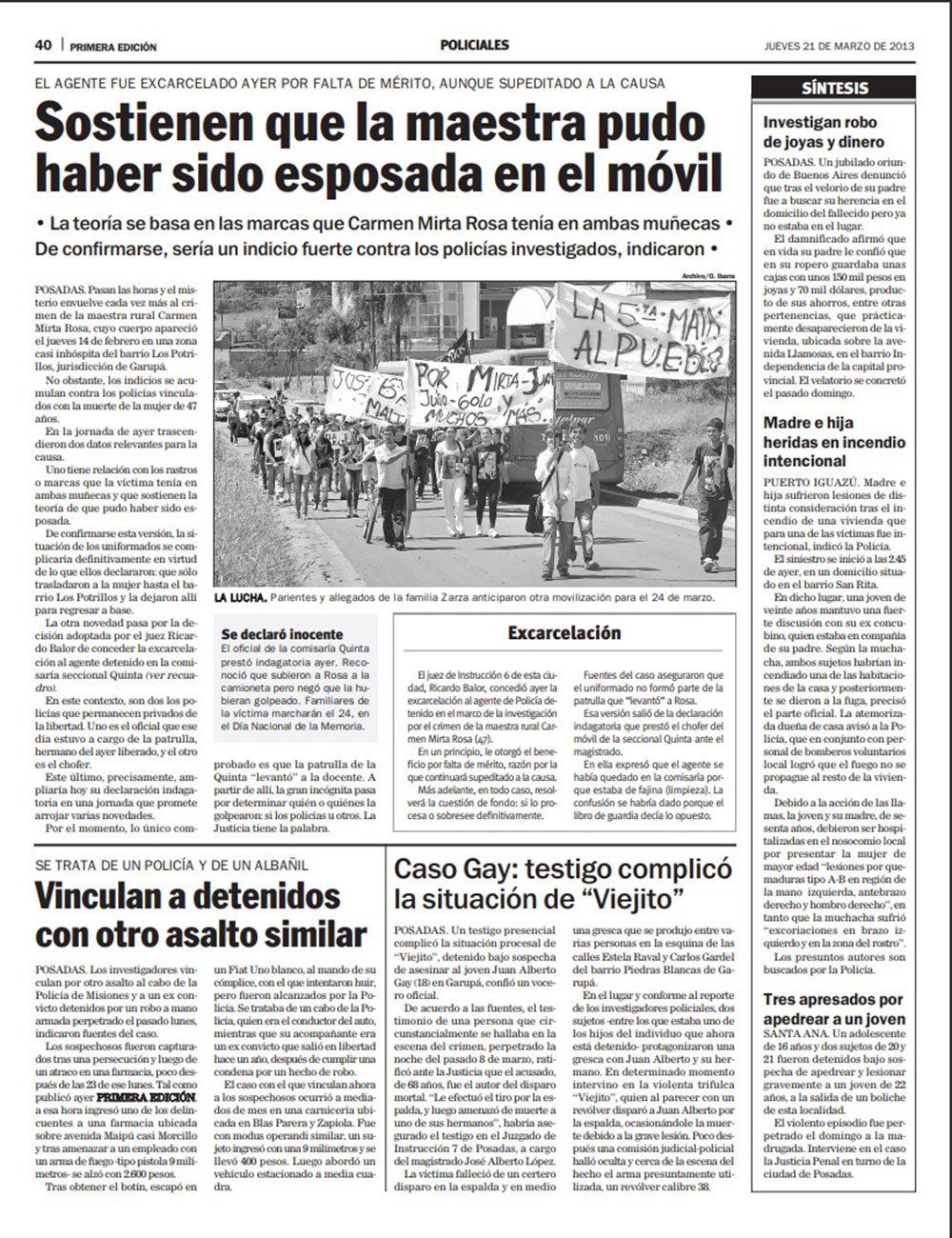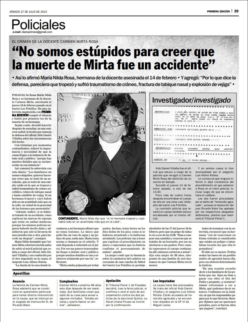 El crimen de Mirta Rosa sacudió la opinión pública y se enmarcaría en uno de los casos más graves de violencia institucional.