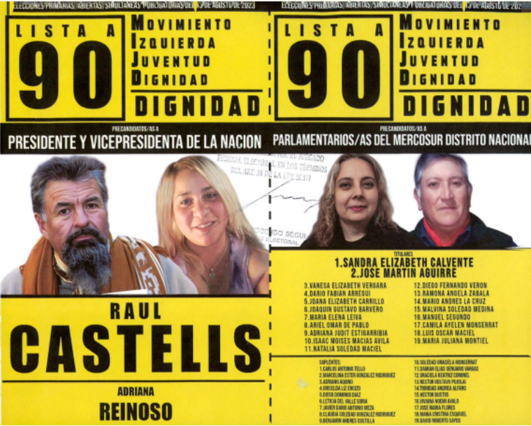 5 – Movimiento Izquierda Juventud Dignidad: 2 boleta a presidente, vice y parlamentarios.