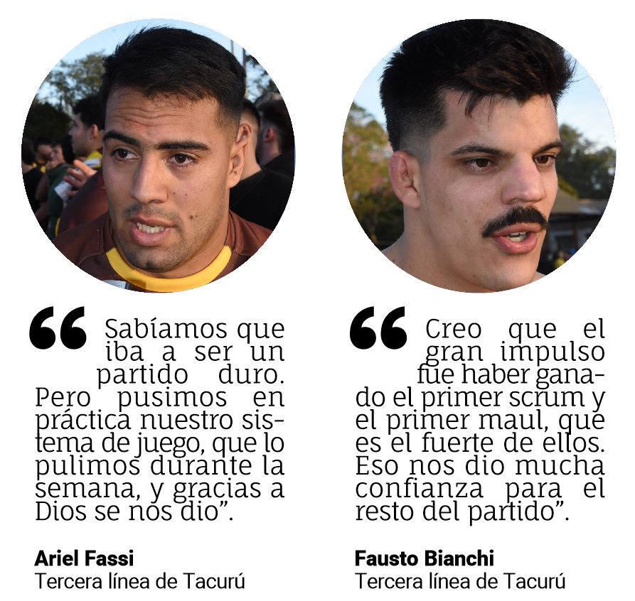 Tacurú estuvo firme en el scrum y dominó el line, fijo en el que le robó un par de pelotas al azulgrana con el buen trabajo de Ramiro Golke y Augusto Prokopio en esa plataforma.