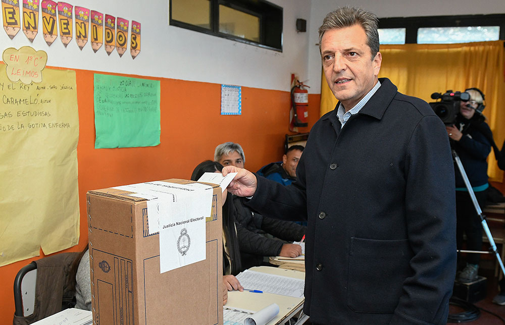 Sergio Massa fue el primer precandidato a presidente en emitir su voto. El representante de Unión por la Patria votó en la localidad de Tigre minutos después de las 8.30.