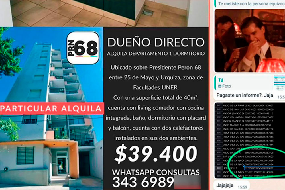 Fuentes policiales de la División Delitos Económicos, explicaron el engaño que llevaba a cabo el delincuente para estafar a personas que buscaban alquilar un departamento en el centro de la ciudad de Paraná, Entre Ríos.