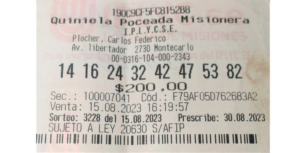 En las últimas horas se conoció que el ganador del pozo de más de 50 millones de la Poceada Misionera, el pasado 15 de agosto en Montecarlo, es un jubilado.