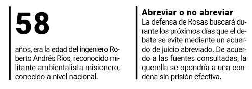 Pero las mismas voces resaltaron que la causa tiene representación familiar de la víctima, Roberto Ríos, y como querellantes se opondrían a una salida como la mencionada, más aún si se tiene en cuenta que el beneficio de excarcelación en la etapa de instrucción del expediente fue rechazado y apelado, como se remarcó.