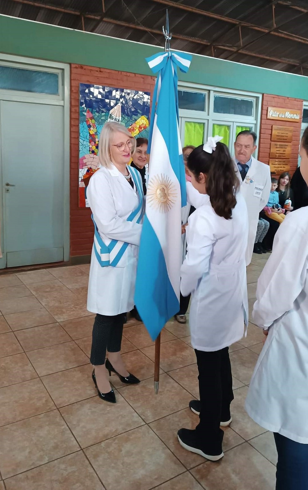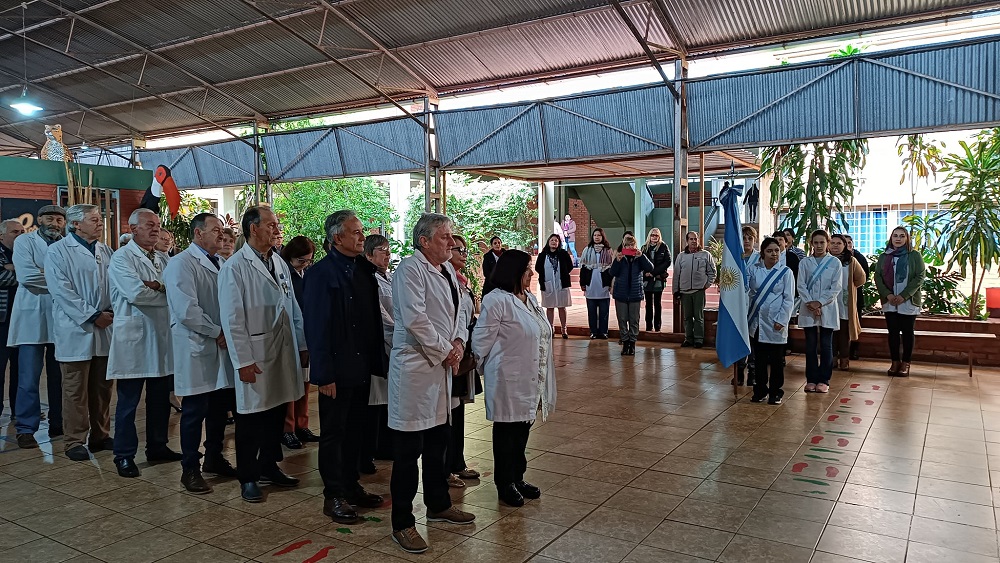 La bienvenida estuvo a cargo de la directora del establecimiento cuyo edificio fue declarado Patrimonio Cultural Histórico del municipio de Montecarlo, en septiembre de 2017. “Estamos tremendamente agradecidos porque hayan elegido venir a la Escuela. Es una enorme alegría y doy gracias a Dios que todavía estoy aquí para poder vivir estos momentos tan lindos. Fue muy emocionante recibirlos, abrirles las puertas. Lo más hermoso es el reconocimiento que nos brindan porque nos alienta a seguir formando ciudadanos para la Patria”, aseveró.