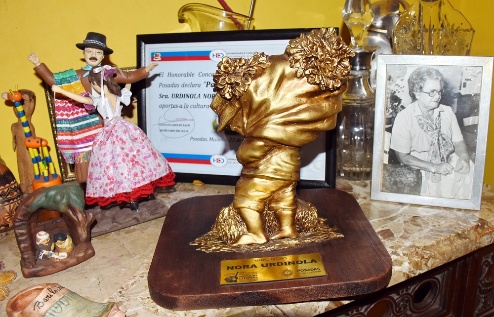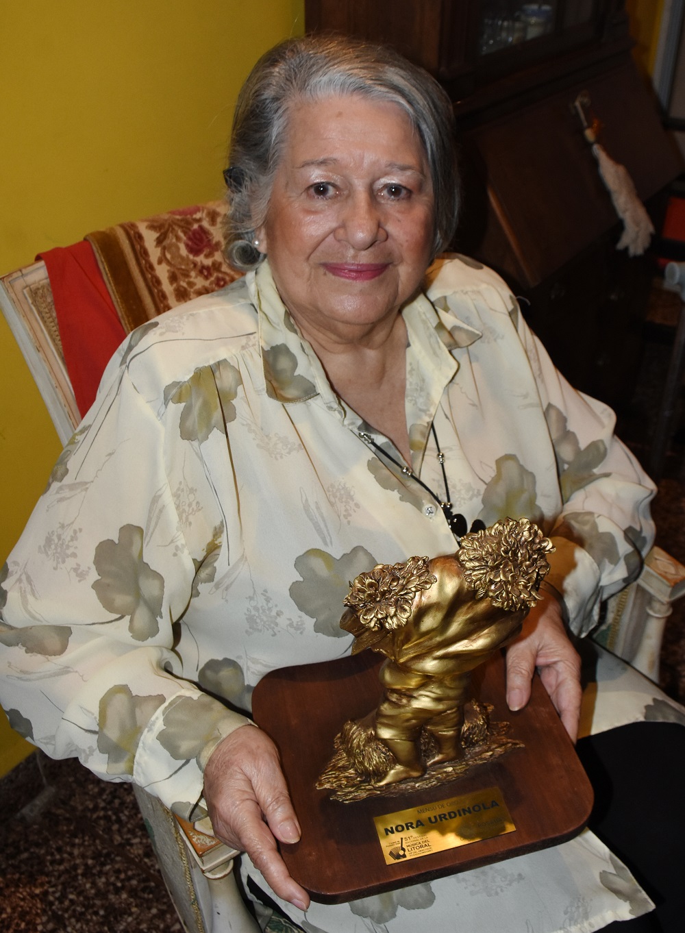 En el 51º Festival Nacional de la Música del Litoral y 13º del MERCOSUR, la profesora y bailarina recibió el “Mensú de oro”, uno de los mayores premios que se otorga a los principales referentes de la Cultura en cada edición. Contó que, como hacía poco había fallecido Ricardo Ojeda, “lo primero que hice, lo primero que me nació, fue alzarlo y dedicarlo al músico que fue artífice de este Festival junto a otros tantos. Me emocionó mucho recibirlo. Fue como el corolario a toda una trayectoria”. Contó que como transcurría la pandemia, la llevaron engañada. “Luis Marinoni me dijo, ‘quiero que veas lo que estamos haciendo. Por qué no te pones una de tus lindas túnicas y te paso a buscar’. Me llevó al anfiteatro. Al verme, Silvia Ferreyra me dice: ‘vení Norita, vamos a charlar en el escenario porque hay más luz’. Había una mesita y dos sillitas. Entretenida, sentía las voces de un locutor, pero no daba importancia hasta que dice: ‘el Mensú de Oro de este año es para Nora Urdinola’. Me doy vuelta y vi que Marinoni había formado a todos sus bailarines y tras un aplauso cerrado apareció el intendente Leonardo Stelatto con el director de Cultura, Benito del Puerto, y me lo entregan en una bolsa de terciopelo”. Recomendaron que no contara a nadie sobre el premio porque, por la pandemia, había sido grabado para salir al aire durante otra jornada, “entonces llegué a casa y le conté a la Virgen de Guadalupe, que es mi protectora”, añadió entre risas.
