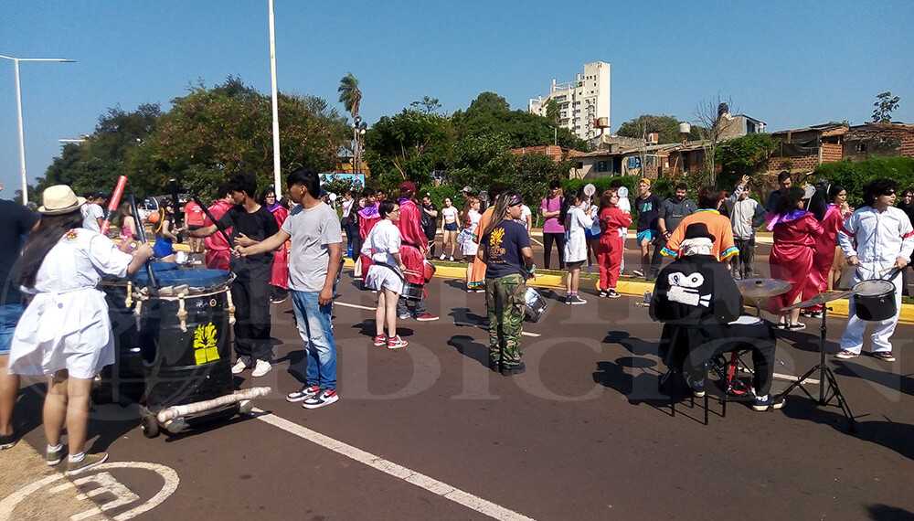 Este tramo de la costanera tiene subidas y bajadas, lomos de burro que son una traba para transportar los instrumentos, no hay sombra y muy cerca está el Hospital Escuela de Agudos y el Hospital Materno Neonatal, con todo lo que significa. Es alrededor de un kilómetro de distancia en total, entre el Parque de la Cascada y el Parque de las Fiesta, donde se ubican los dos palcos, pero aquí entra otra crítica: la falta de distancias y la acústica.