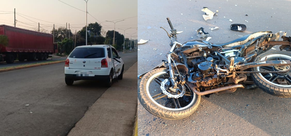 Este martes por la tarde en la intersección de las avenidas Quaranta y Aguado de Posadas colisionaron un automóvil y una motocicleta.