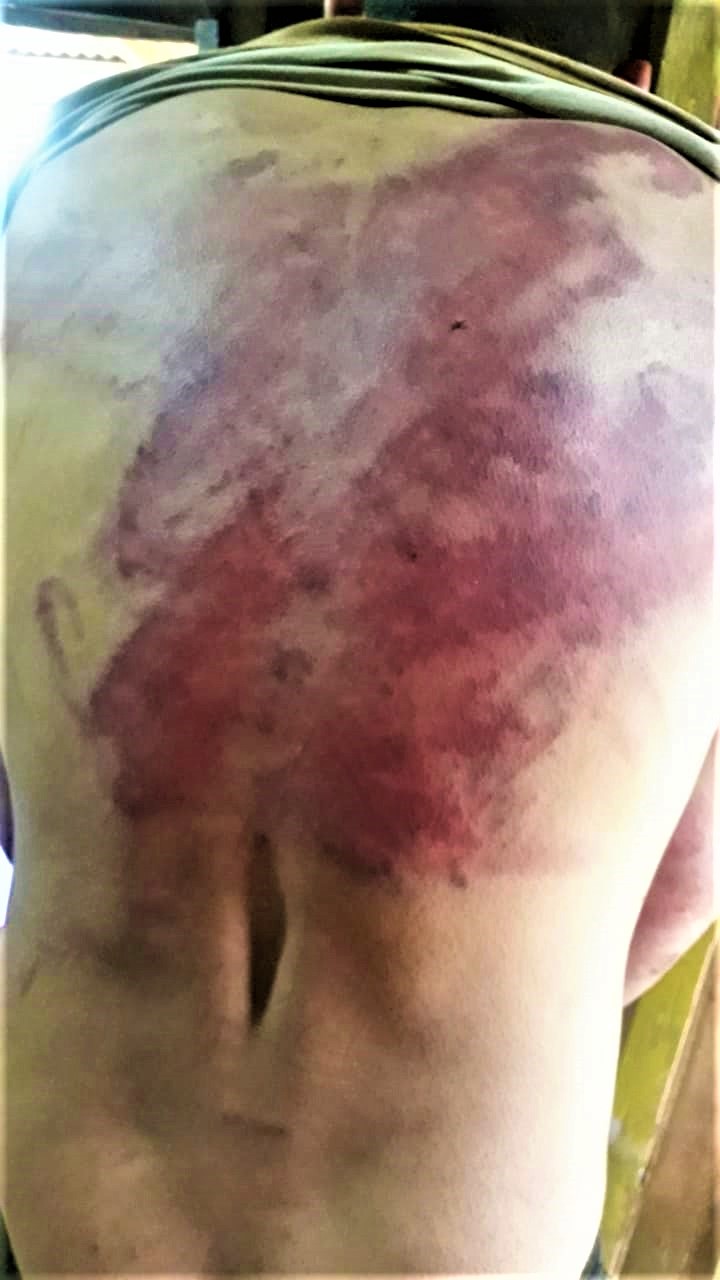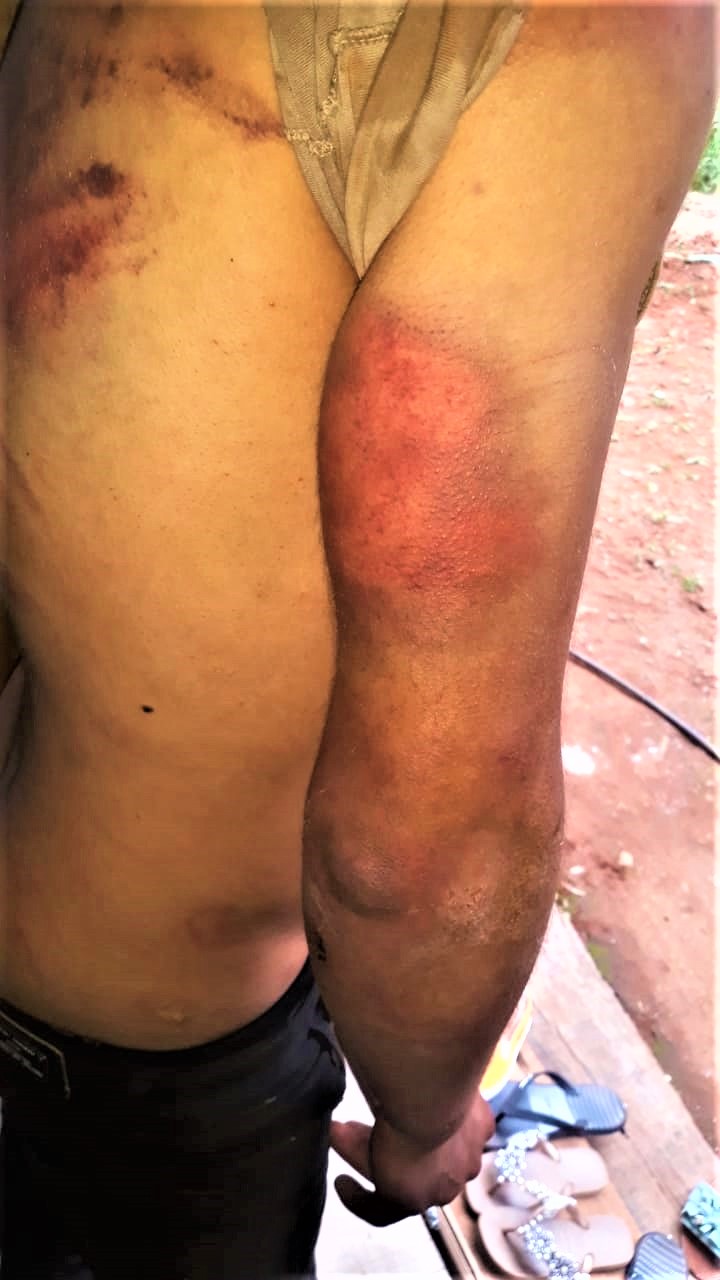 “Me esposaron como si nada y en el monte (cerca del basurero municipal) me bajaron. Me pegaban patadas y con palos de todo tipo para que hiciera flexiones de brazos y abdominales. En un momento no daba más y les pedí que me maten nomás que ya no podía, solo se reían y me dejaban descansar cinco minutos”.