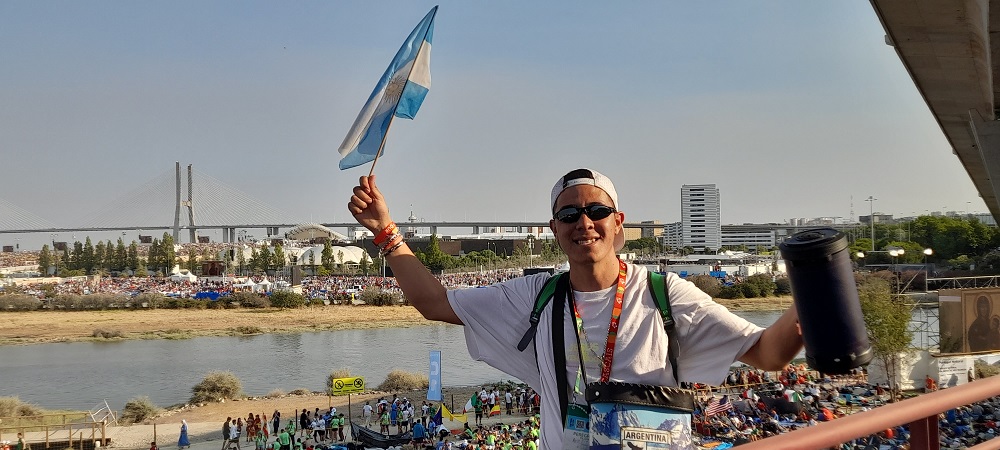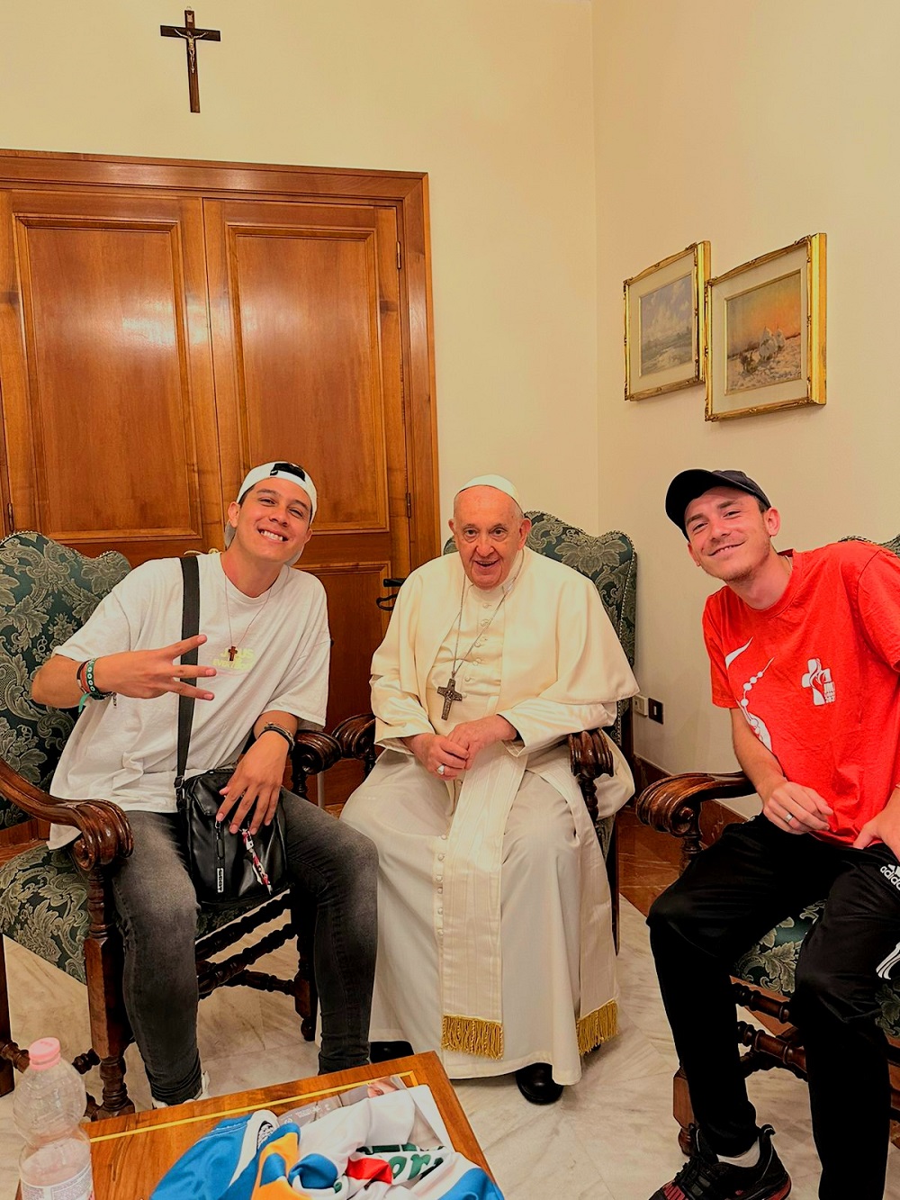 Mientras promocionaba el evento junto a su amigo Brian, recibió la noticia que un video, mostrando las actividades que hacían para poder viajar, llegó a manos del Papa que, a través de un sacerdote, “se comunicó para decirnos que tenía ganas que fuéramos y que nos quería ayudar”. A una semana antes del JMJ, “nos confiaron que el Santo Padre gestionó los vuelos para ambos y que el sábado 29 de julio salíamos desde Ezeiza. Era la primera vez que íbamos a Europa y no sabíamos si podríamos hablar con él”, agregó emocionado quien comenzó su historia con la música en 2016.