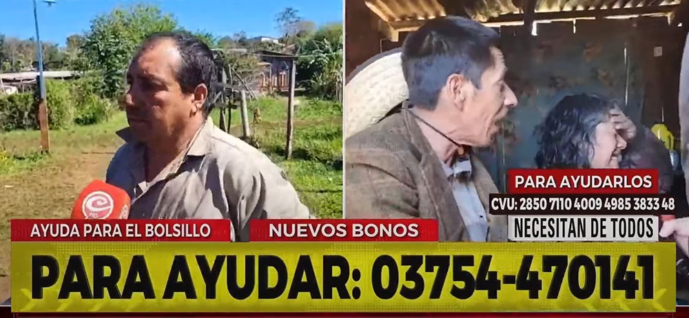 Así fue que dos familias con necesidades básicas insatisfechas, movilizaron al corresponsal misionero del canal porteño a difundir la necesidad de asistencia que presentaban.
