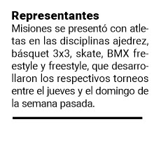 Asimismo, en ajedrez se registraron buenos resultados finales con un sexto puesto en Sub 14 por equipos, integrado por María José Jiménez, Alexis De Olivera y Félix Jost de Puerto Rico, Bruno Recalde de Posadas y Micaela Villagra de Garuhapé; y la séptima posición en Sub 16 por equipos, con Jesús Álvarez y Rocío Benítez Jelén de Posadas, Bruno Vogel de Puerto Rico, Mateo Genaro Prado de Garuhapé, María Ingrid Unternahrer de Oberá.