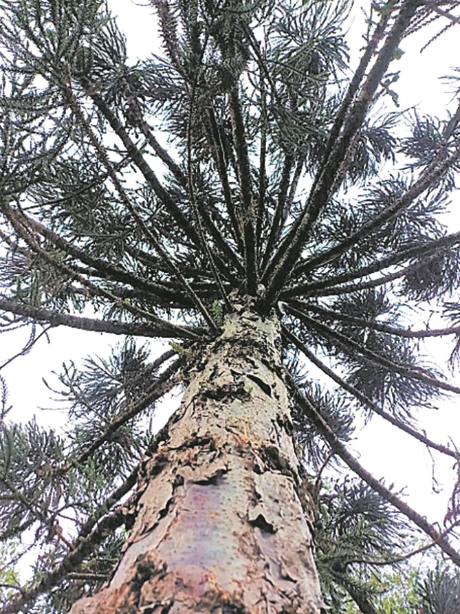 Las hojas de pino Paraná poseen una espina terminal, que dificulta poderla agarrar, sin embargo, ella da, se brinda, mientras siga conectada a la fuente superior e inferior sigue dando. Más si se desconecta pareciera activarse el mecanismo de defensa y dichas espinas repelen al que se quiere acercar, como nosotros cuando cansados de dar advertimos el uso y abuso y no podemos más.