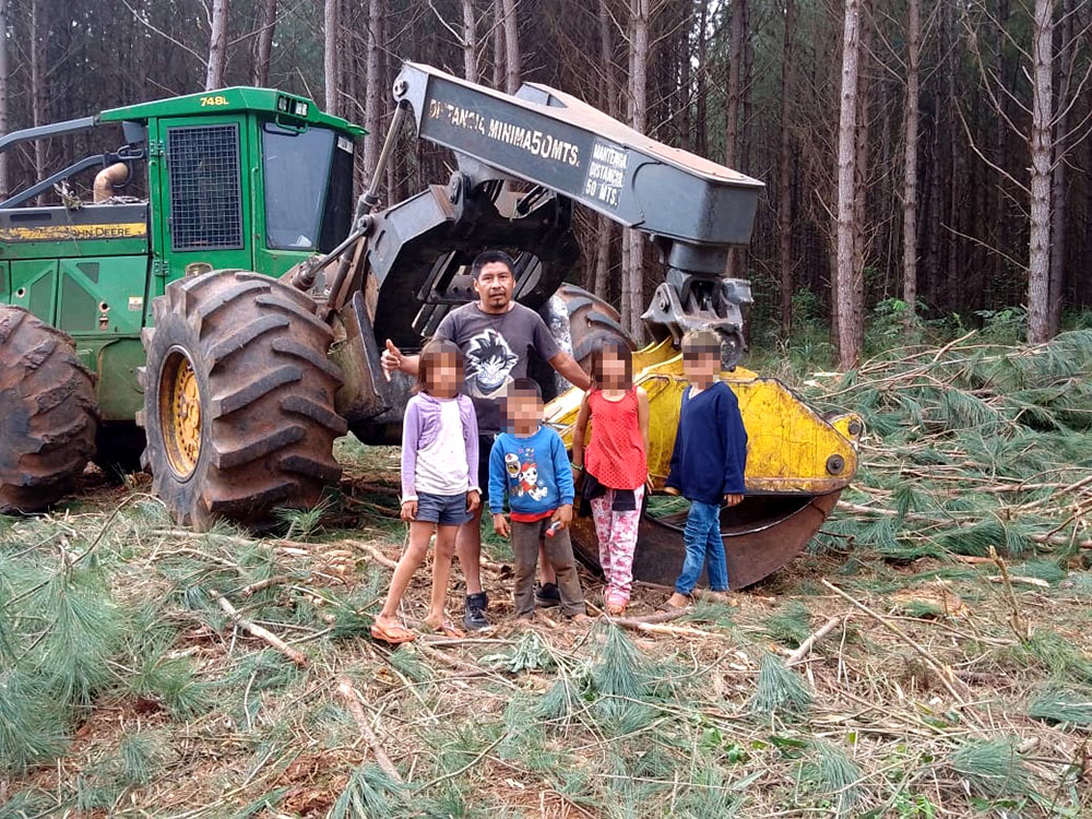 El mburuvicha Ramón Baez contó que “esta empresa está destruyendo la selva misionera. Están invadiendo con máquinas, plantando pinos cerca de la comunidad -a 50 metros- usando químicos que son un peligro para chicos y grandes“.