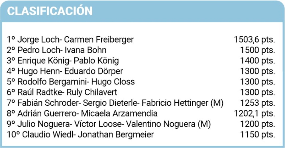 Con la participación de solo catorce equipos, el pasado fin de semana se realizó la cuarta fecha del Torneo Interno de Montecarlo. El premio mayor se fue para Puerto Rico porque Jorge Loch y Carmen Freiberger se impusieron en una jornada marcada por el escaso pique y temperaturas bajas.