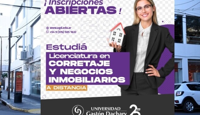 La Universidad Gastón Dachary (UGD) ofrece la Licenciatura en Corretaje y Negocios Inmobiliarios, una propuestada orientada a quienes se desempeñen o vayan a desempeñarse en el ámbito inmobiliario.