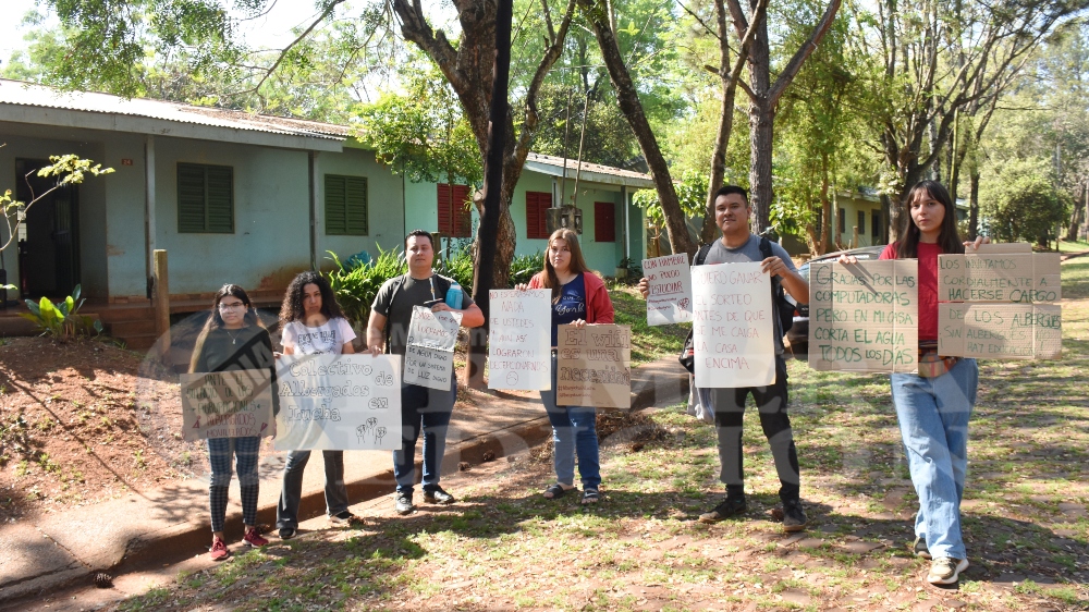 Por este motivo, ayer un grupo de alumnos se congregó con carteles en repudio a la situación de albergues justo cuando se realizó un acto en el Campus, por la apertura de un Espacio Progresar, con la presencia de funcionarios de la Universidad y de Nación: “Esto nos lleva a hacer una medida de fuerza porque hemos reiterado los reclamos a través de notas y en los medios de comunicación, con distintas intervenciones”, agregó la albergada.