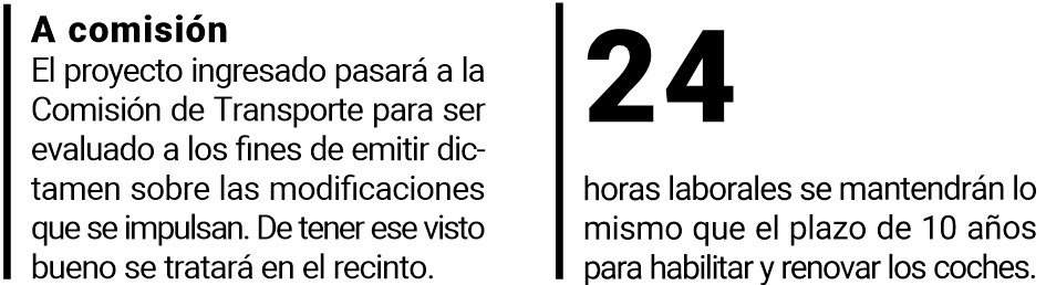 Entre las modificaciones, se evaluarán el transporte de equipaje gratuito (salvo caso que superen ciertas medidas, por lo cual deberán abonar equivalentes a una bajada de bandera); continuar con horarios laborales de 24 horas incluido feriados y días no laborables; ser habilitados y renovados los vehículos con una vida útil de diez años y contar con los elementos de seguridad necesarios para transportar pasajeros (butacas, apoya cabeza y cinturón de seguridad).