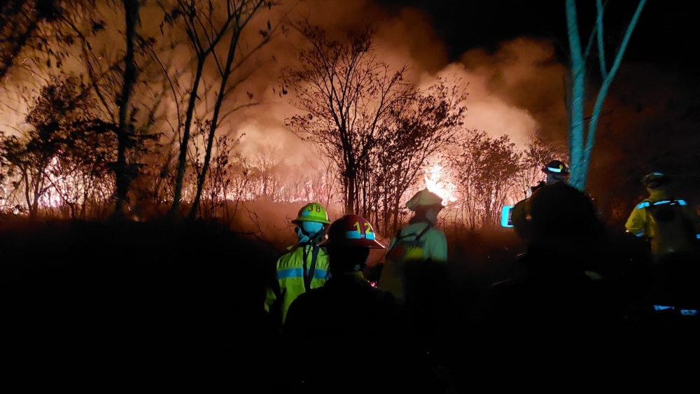 El segundo jefe del cuerpo de bomberos, Nicolás Carrasco, señaló a PRIMERA EDICIÓN que “nos alertaron aproximadamente a las 21.15 del jueves sobre el incendio. La gente veía que irradiaban las llamas de fuego y el humo hacia la zona oeste de Puerto Rico, que sería nuestro Parque Monte Seguín y no dudaron en llamarnos”.