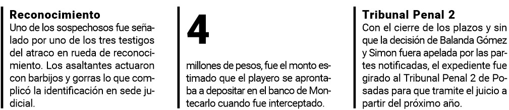 Tal como publicó PRIMERA EDICIÓN, ambos declararon en indagatoria y negaron ser los autores. Los presuntos asaltantes aseguraron que ellos no participaron en el ilícito y brindaron detalles de los lugares en los que estuvieron a la hora en que ocurrió el hecho.