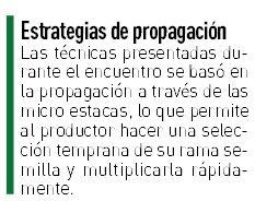 El investigador acotó que, “al hablar de 2 o 3 entrenudos, por cada rama que el productor guarde para generar material de semilla se podría, en vez de obtener 10 plantas, obtener hasta 25 plantas. Si a esta propuesta, sumamos la estrategia de cortar una vez que la micro estaca brotó y me dio una plántula, enraizamos y dejamos la micro estaca siga produciendo, podemos hablar de 3 o 4 ciclos de multiplicación, incrementando rápidamente la calidad y trazabilidad de los materiales con los cuales contamos”.