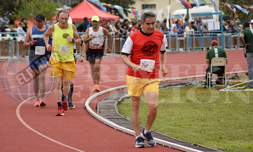 Más allá de la lluvia, continuó ayer en la capital provincial el Campeonato Nacional de Pista y Campo Máster de atletismo, que reúne a más de mil atletas de toda la Argentina e incluso de países vecinos y hasta de Kenia.