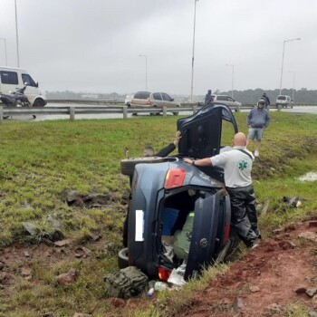 Al tratar de desviar al animal, perdió el control del rodado y volcó al costado de la cinta asfáltica.