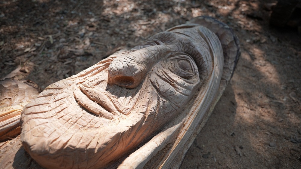 A su vez, el artista explicó que “fue un trabajo de 3 días de jornada completa con temática libre sobre la Cultura y Mitología Guaraní, donde se realizó tallado de madera, metales y paneles”.