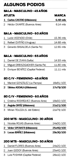 Con más medallas para Misiones, se cerró ayer a puro ritmo el Campeonato Nacional Máster de atletismo, que durante cuatro días copó la pista Eric Barney del Centro Provincial de Alto Rendimiento Deportivo (CePARD).