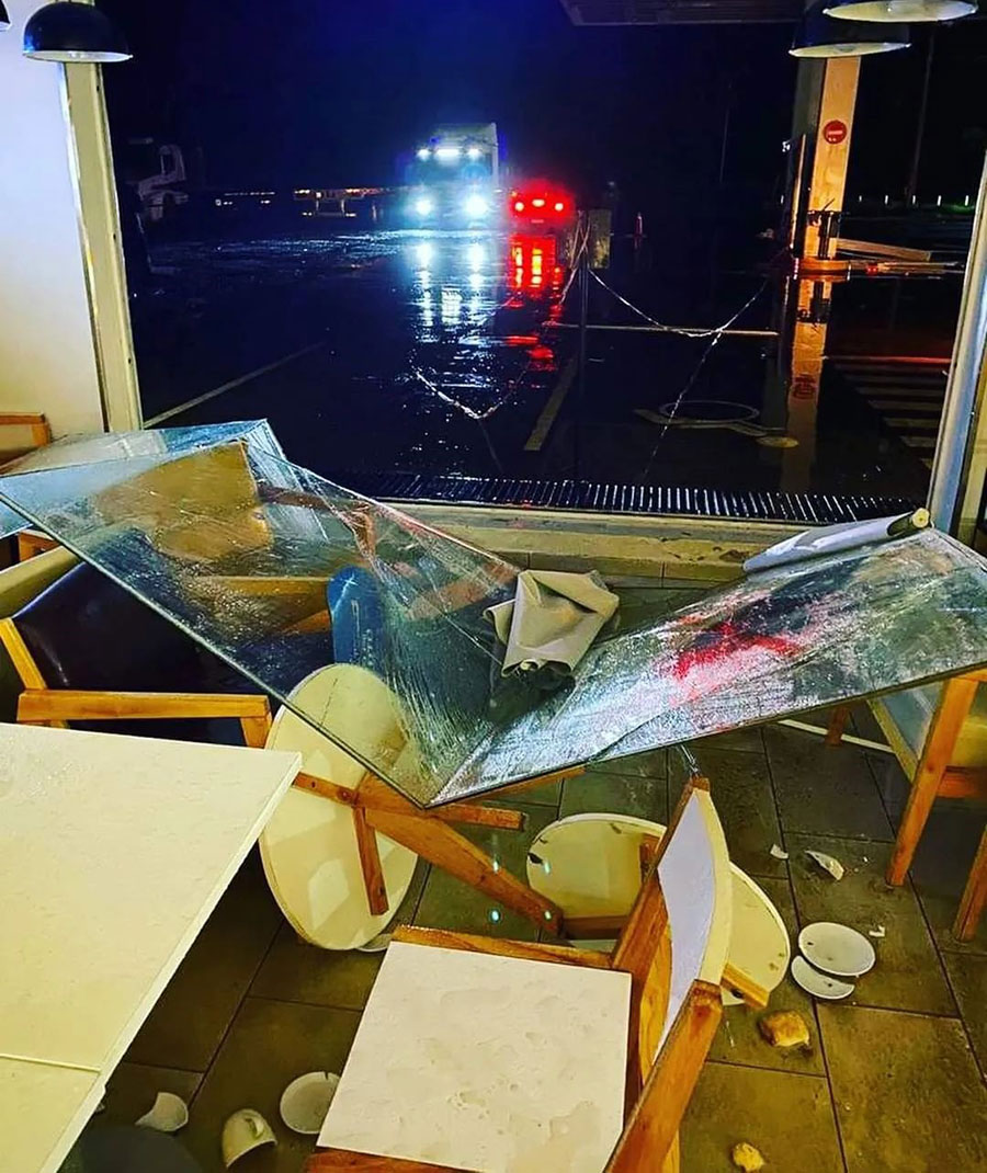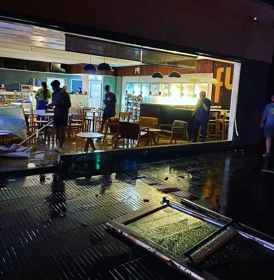 Y es que los efectos de la lluvia y el intenso viento causaron destrozos en la YPF; de hecho, se rompieron los vidrios del comedor y bar del local.