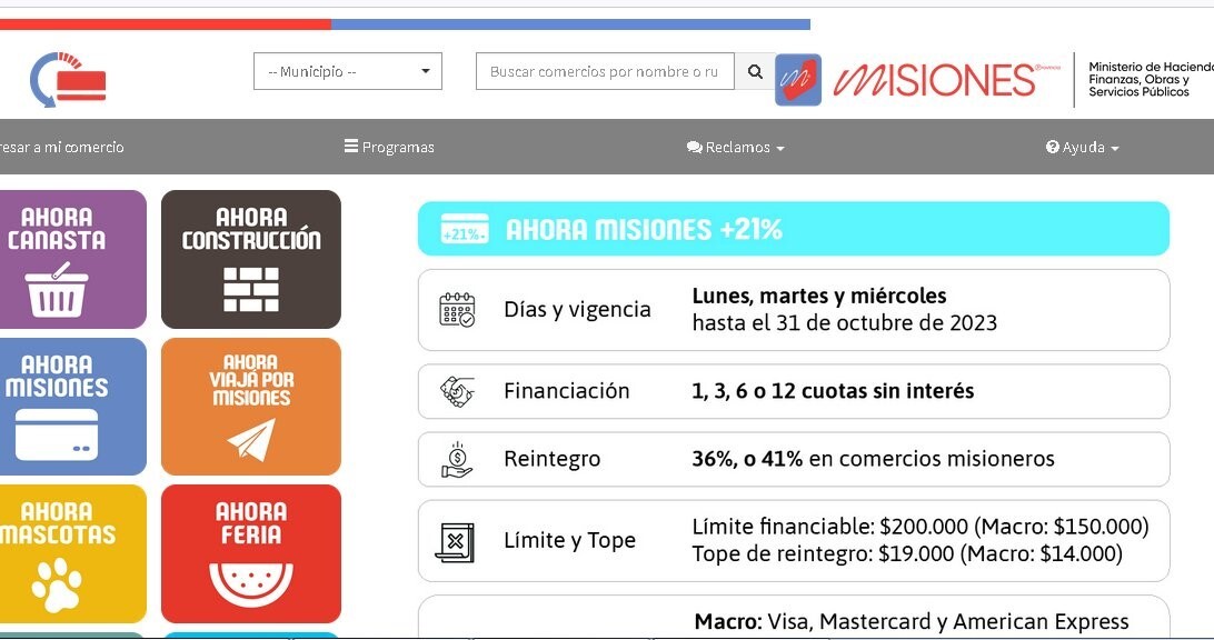 Si bien no hubo anuncio oficial, a través de la página web del Ministerio de Hacienda de Misiones se informó la prórroga del programa Ahora Misiones +21 hasta el 31 de octubre. Mediante este plan se consiguen devoluciones de hasta el 41% con las compras en los comercios adheridos.