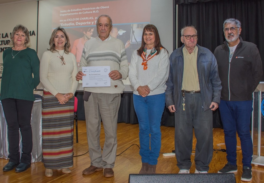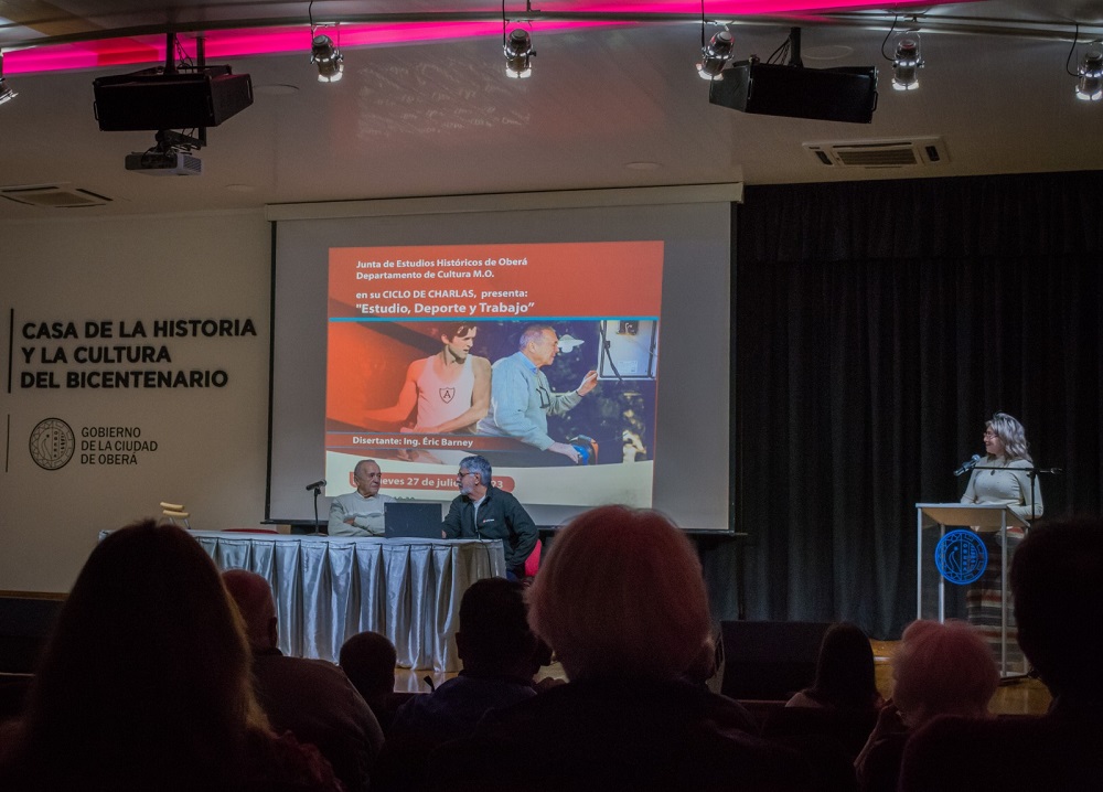 La Junta de Estudios Históricos de Oberá tuvo en su ciclo de charlas a Eric Barney (82) en la presentación denominada “Estudio, Deporte y Trabajo”. Tres pilares que marcan su andar entrelazándose y fundiéndose en una elección de vida, con un condimento que considera indispensable, la pasión.