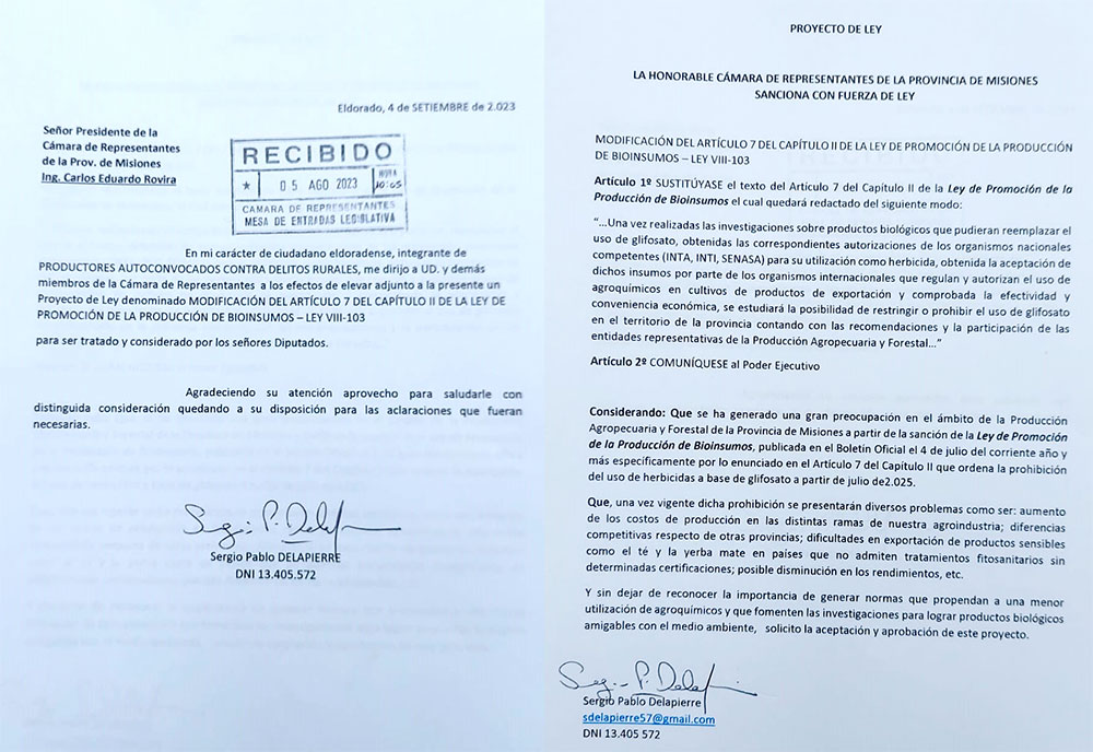 Tras la aprobación de la Ley de Promoción de la Producción de Bioinsumos, que en el artículo 7 del Capítulo 2 prohíbe la utilización del glifosato, sus componentes y afines en todo el territorio misionero, dando un plazo de dos años a productores y cooperativas para adaptarse a dicha ley, muchas fueron las voces a favor y en contra que se alzaron tanto en la provincia como en el país.