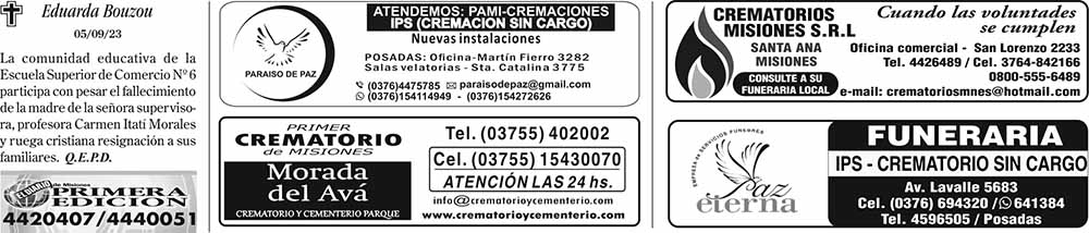 Fúnebres del Miércoles 6 de Septiembre de 2023