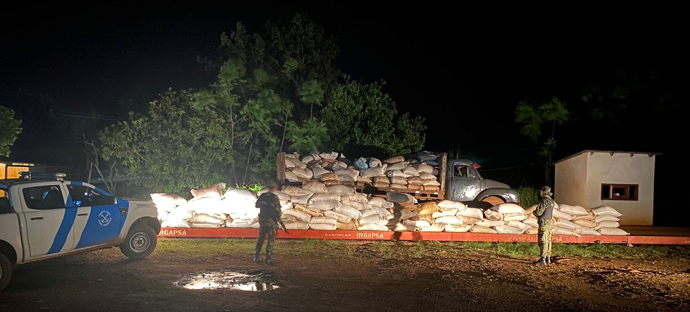 A la altura del kilómetro 1.152 del río Uruguay, en cercanías de la localidad de El Soberbio, personal de la Prefectura Naval Argentina incautó un camión y una embarcación cargados con más de 200 bolsas de soja, con un peso total de 9.100 kilos.