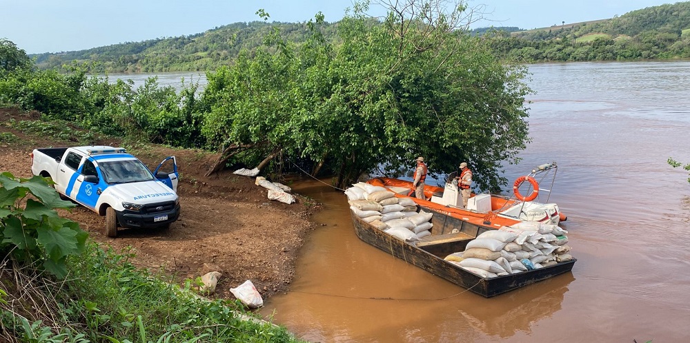 A la altura del kilómetro 1.152 del río Uruguay, en cercanías de la localidad de El Soberbio, personal de la Prefectura Naval Argentina incautó un camión y una embarcación cargados con más de 200 bolsas de soja, con un peso total de 9.100 kilos.