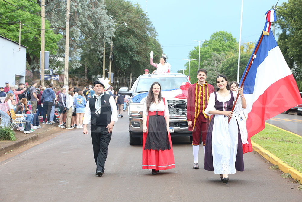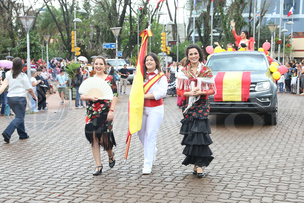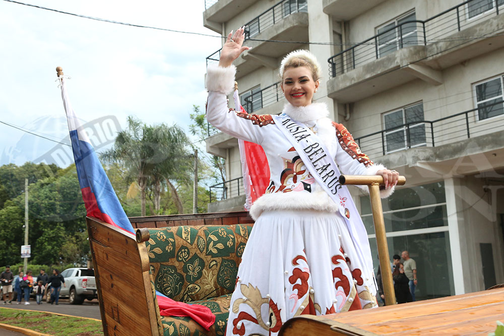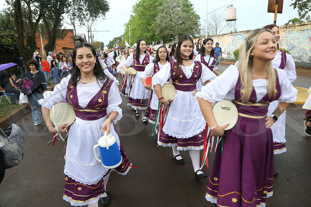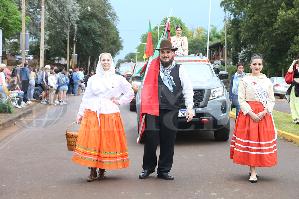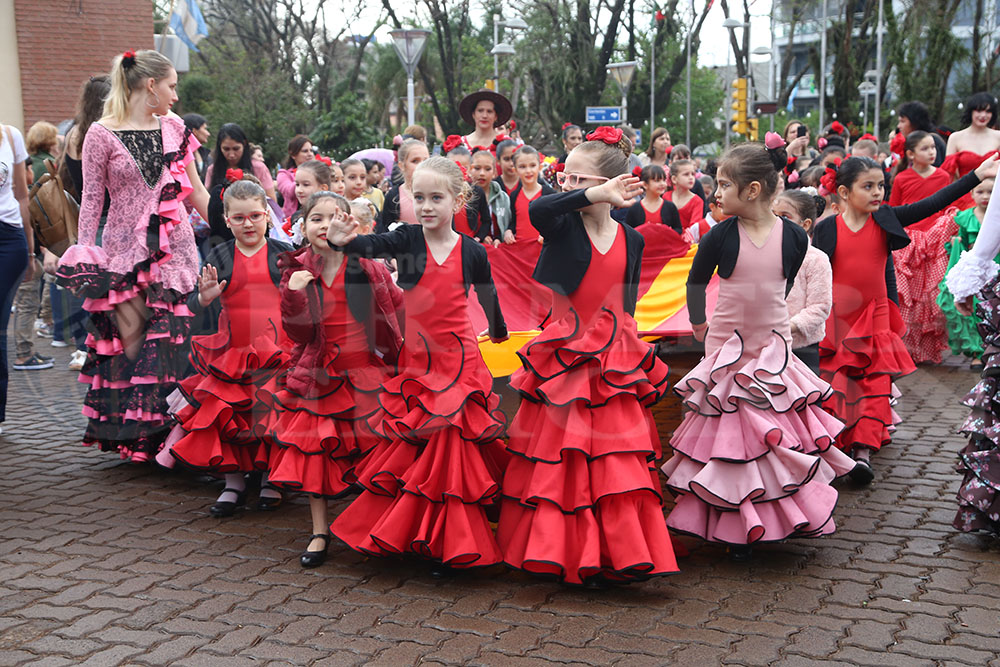 Iniciaba la marcha la Paisana Argentina, Sol Vega, junto a los paisanitos. Luego fue el turno de las paisanas de Misiones y de Oberá; Melisa Baez y Ludmila Romero, respectivamente. Todas representantes del Centro Cultural Argentino.