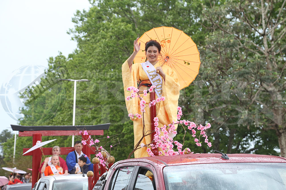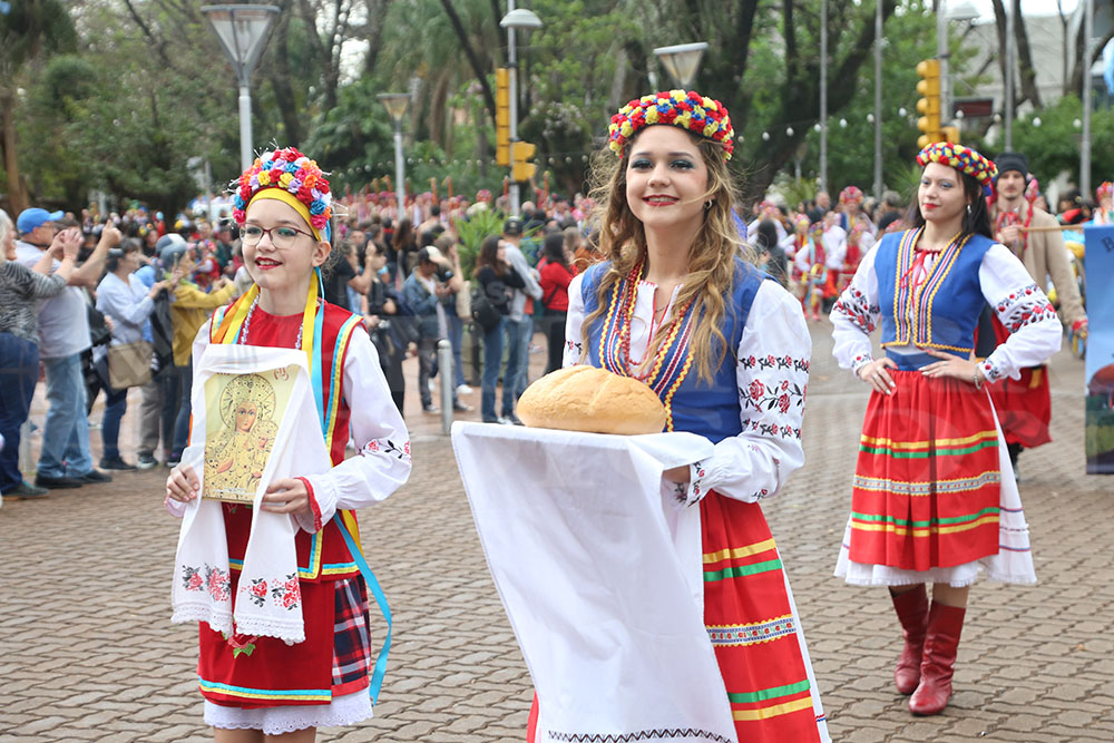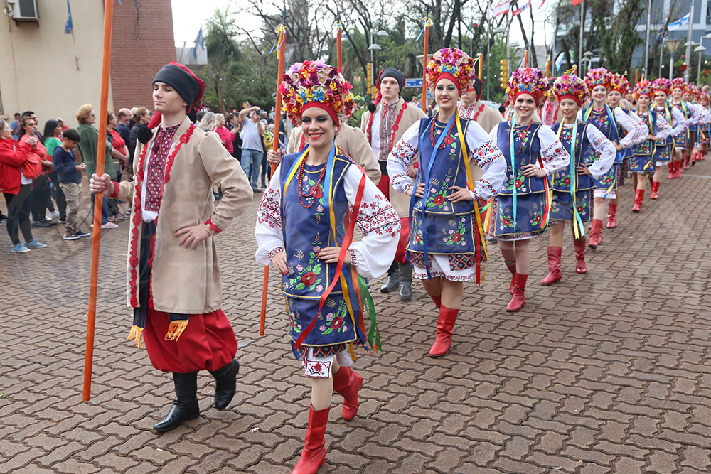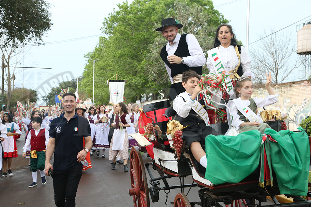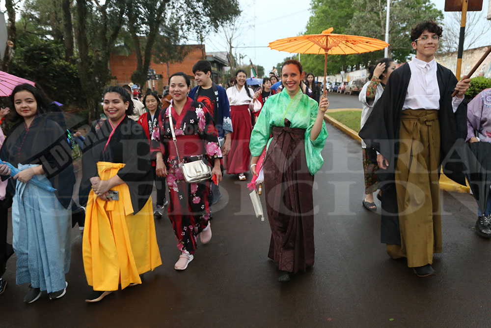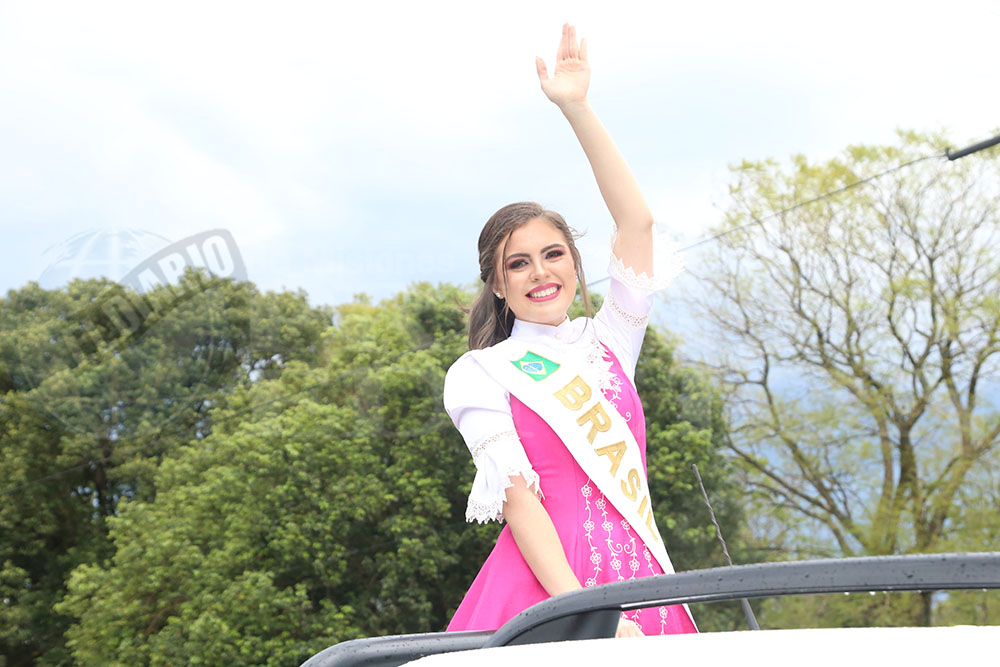 Iniciaba la marcha la Paisana Argentina, Sol Vega, junto a los paisanitos. Luego fue el turno de las paisanas de Misiones y de Oberá; Melisa Baez y Ludmila Romero, respectivamente. Todas representantes del Centro Cultural Argentino.