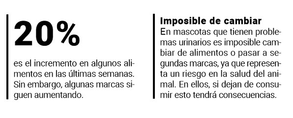 Con todo el incremento en la materia prima de los alimentos para mascotas, precisó que los aumentos en los precios de los procesados están “en el orden del 20%”.