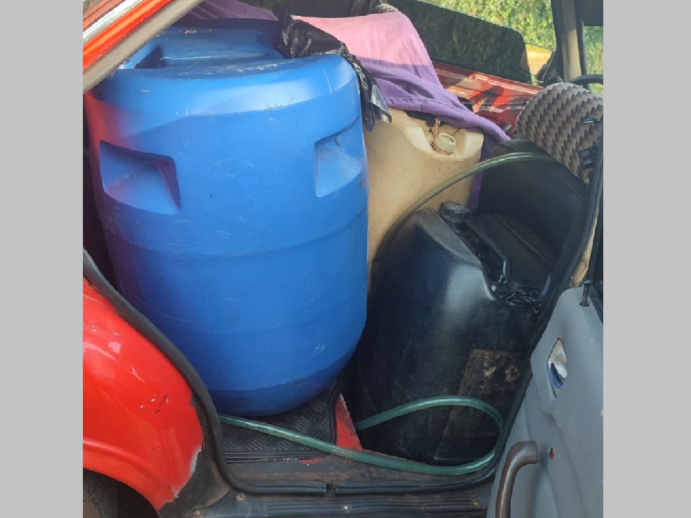 Todo comenzó cuando uniformados visualizaron y acorralaron a un Peugeot de color rojo. Tras lograr su detención se constató que el vehículo era conducido por un joven de 24 años y al revisar el interior del coche se observó que el rodado tenía una gran cantidad de bidones de plástico, 6 en total, y en el baúl un tanque de 110 litros de chapa. Lo que sumando todos los recipientes se totalizaron 500 litros de combustible.