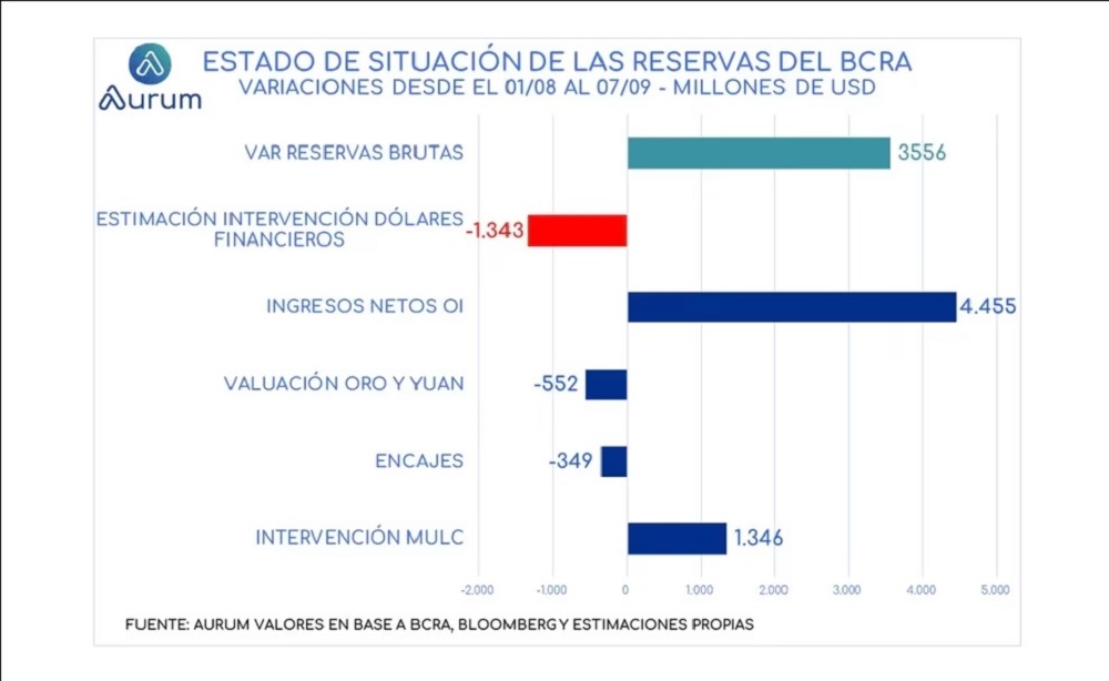 En ese sentido, en Aurum Valores aseguraron que “la intervención en el mercado de dólares financieros (desde comienzos de agosto) le habría costado al BCRA perder prácticamente todos los dólares que logró acumular por el Mercado Único y Libre de Cambios (MULC)”.