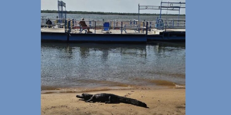 Como quién no quiere la cosa, este lunes, un yacaré apareció en la playa del Club Regatas de Corrientes, en plena capital provincial, según confirmaron fuentes de la institución.