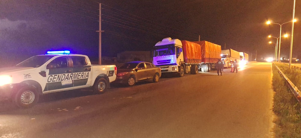 En el marco de un patrullaje de control sobre la ruta nacional 14, gendarmes dependientes del Escuadrón 7 Paso de los Libres, en horas de la noche, advirtieron los sospechosos movimientos de un automóvil que acompañaba a tres camiones de transporte.