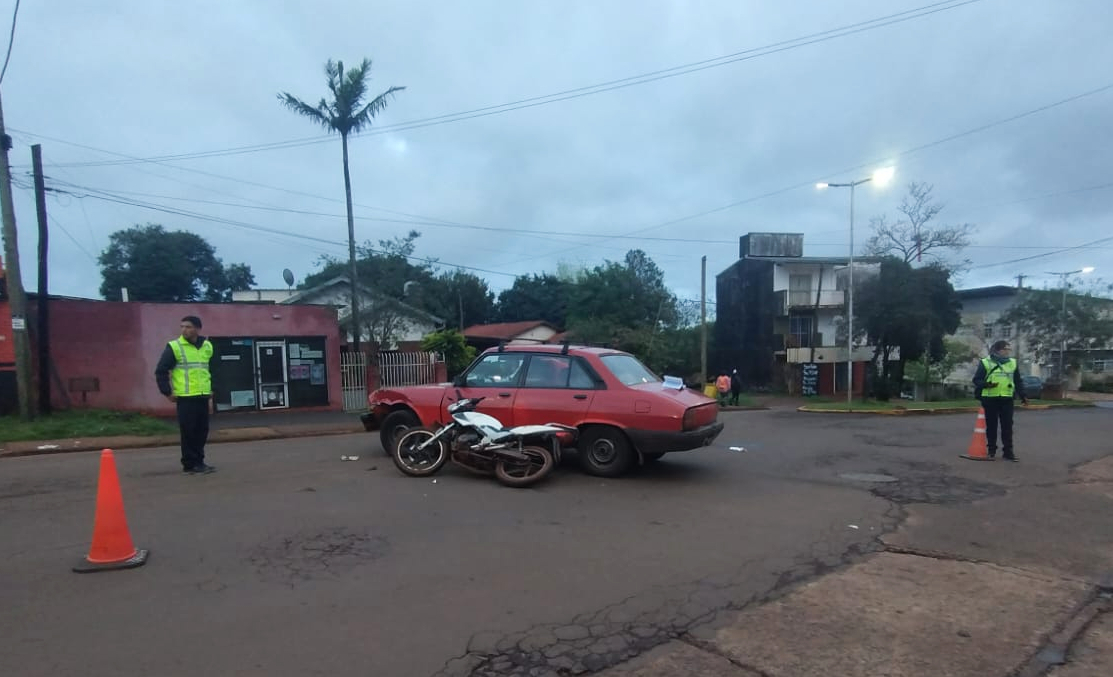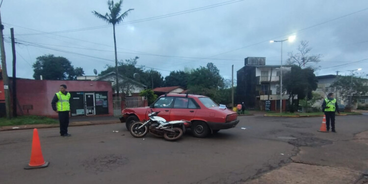 Un motociclista de 21 años permanece internado y lucha por su vida luego de colisionar contra un automóvil en la ciudad de Oberá, según fuentes policiales.