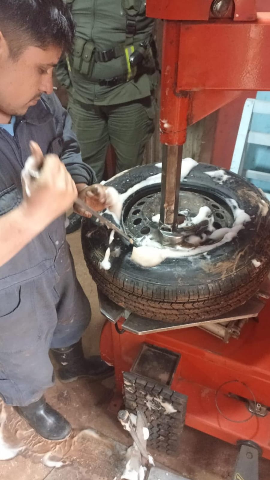 Una vez con autorización, y ante la presencia de testigos, se trasladó a ambos vehículos hasta una gomería cercana, donde se procedió a desmontar y desarmar los rodamientos. Así se constató que dentro de esos neumáticos y auxilios se ocultaban en forma superpuesta, como si se tratara de muñecas “mamushkas”, un total de 23 neumáticos de origen extranjero, los cuales carecían de aval aduanero.