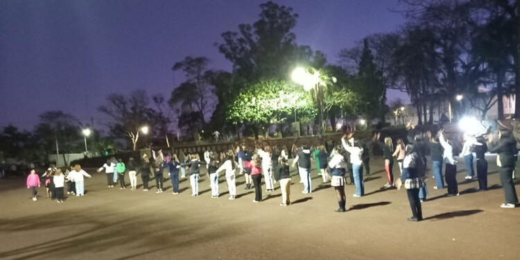 PRIMERA EDICIÓN recorrió algunos ensayos entre ellos en la plaza Belgrano en el cual estaban los jóvenes del Colegio Cristo Rey, entre ellos las directoras del cuerpo de baile, Julieta Fleitas, Florencia Nyszczu, Valentina Tenaschuk, y los directores de la banda de música, Alejo Álvez y Franco Olexyn.