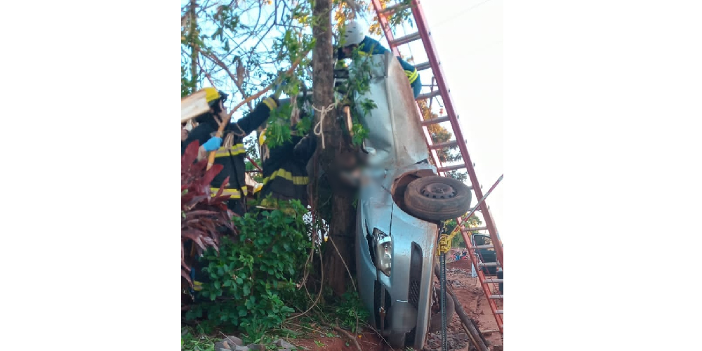El siniestro vial dejó a las tres personas que viajaban en el interior con heridas de gravedad. El vehículo quedó recostado contra un árbol que se encontraba al margen de la cinta asfáltica.