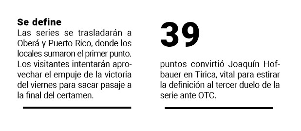 Los últimos cinco minutos fueron vibrantes, punto a punto y con 10 segundos por jugar, Hofbauer metió una bomba de otro partido para igualar el trámite en 80 y mandar las cosas al suplementario. Allí Tirica estuvo muy fuerte de la cabeza, mostró eficacia y se llevó un “triunfazo”.